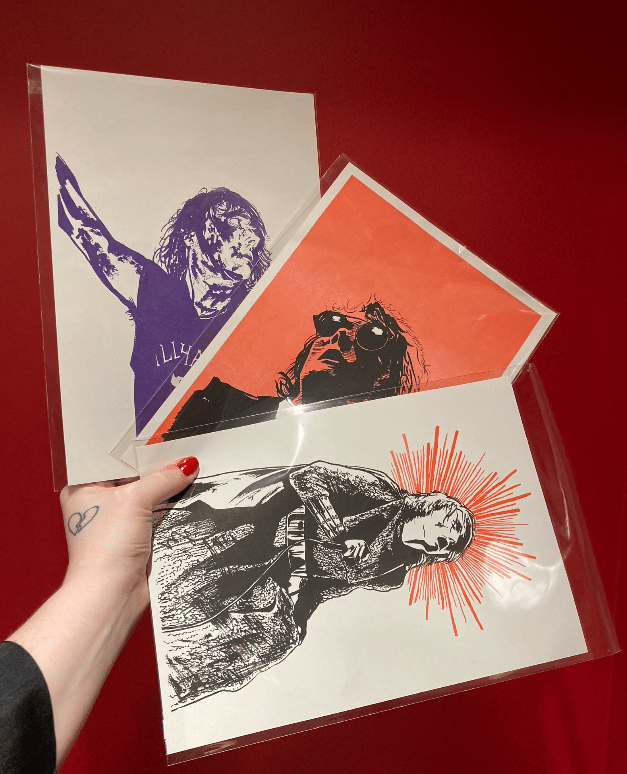 3x illustrations of Gerard Way from the 2022 My Chemical Romance reunion tour, printed on risograph!